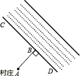 某村庄位于如图所示的小河边,为解决村庄供水问题,需把河中的水引到村庄A处,应在河岸的什么地方开沟,才能使沟最短?请用适当的工具画出图来,并说明理由(     ).