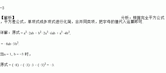 (a-b)2-2a(a+3b)+(a+2b)(a-2b),其中a=1,b=-3.