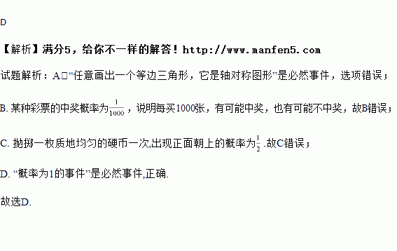 A. “任意画出一个等边三角形,它是轴对称图形”是随机事件