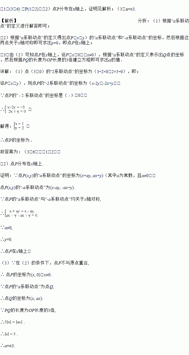 (3)在(2)的条件下,点P不与原点重合,点P的“a系联动点”为点Q,且PQ的长度为OP长度的3倍,求a的值.