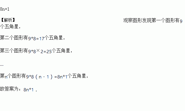 如图所示,每一个图形都是由形状相同的五角星按一定规律组成的,其中第①个图形中一共有9个五角星,第②个图形中一共有17个五角星,第③个图形中一共有25个五角星,…,按此规律排列,则第n个图形中五角星的颗数为_____.