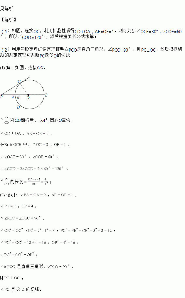 如图,已知AB为的直径,CD为弦,半径为与CD交于点E,将沿CD翻折后,点A与圆心O重合,延长OA至P,使,连接PC.