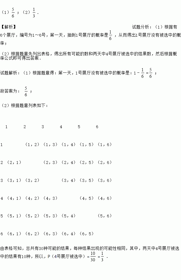 (2)利用列表或画树状图的方法求两天中4号展厅被选中的概率.