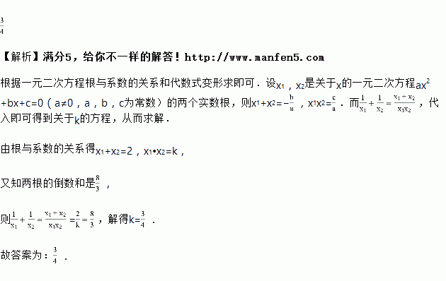 已知方程的两根的倒数和是,则________.