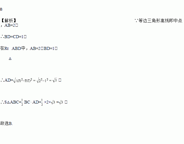 等边三角形的边长为2,则该三角形的面积为( )