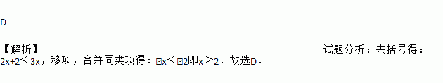 不等式2(x+1)<3x的解集在数轴上表示出来应为( ).