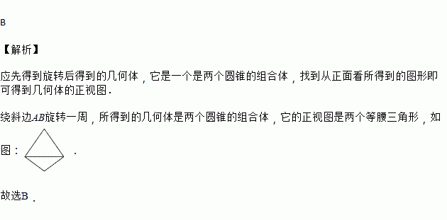 将如图所示的一个直角三角形ABC(∠C=90°)绕斜边AB所在直线旋转一周,从正面看所得到的几何体的形状图是( )