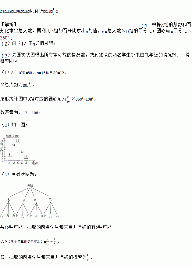£¨3£©¸ÃУ׼±¸ÕÙ¿ªÀûÓÃÍøÂç×ÊÔ´½øÐÐ×ÔÖ÷ѧϰµÄ½»Á÷»á£¬¼Æ»®ÔÚE×éѧÉúÖÐËæ»úÑ¡³öÁ½È˽øÐоÑé½éÉÜ£¬ÒÑÖªE×éµÄËÄÃûѧÉúÖУ¬Æß¡¢°ËÄê¼¶¸÷ÓÐ1ÈË£¬¾ÅÄê¼¶ÓÐ2ÈË£¬ÇëÓûÊ÷״ͼ·¨»òÁÐ±í·¨Çó³éÈ¡µÄÁ½ÃûѧÉú¶¼À´×Ô¾ÅÄê¼¶µÄ¸ÅÂÊ£®