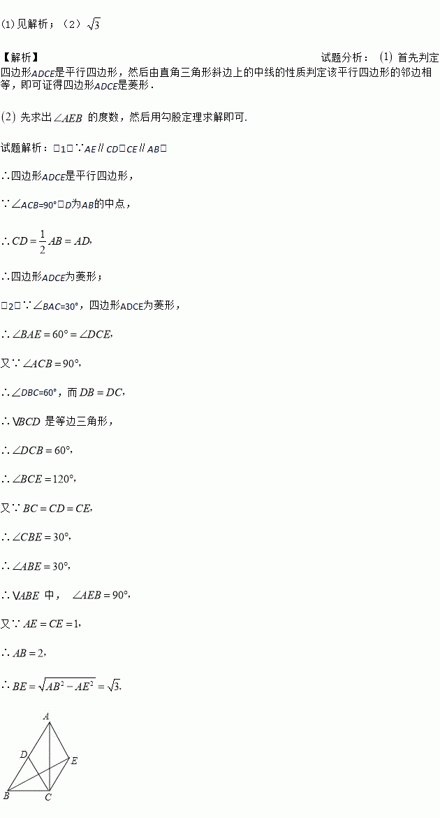 (2)连接BE,若∠BAC=30°,CE=1,求BE的长.