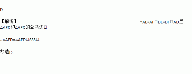 D 【解析】∵AE=AF,DE=DF,AD是△AED和△AFD的公共边, ∴△AED≌△AFD(SSS). 故选D.