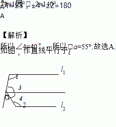 如图,l1//l2,∠1=105°,∠2=140°则∠a=( )