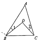 如图,已知∠1=20°,∠2=25°,∠A=50°,则∠BDC等于_________