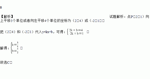 在平面直角坐标系中,若有一点P(2,1)向上平移3个单位或向左平移4个单位,恰