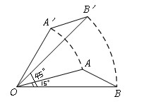 如图,将△AOB绕点O按逆时针方向旋转45°后得到△A'OB',若∠AOB=15°,则∠AOB'的度数是 .![]()