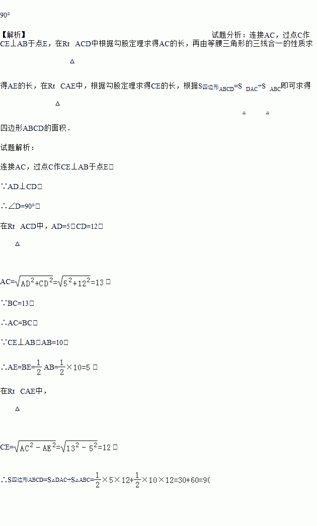 如图,四边形ABCD中,AB=10,BC=13,CD=12,AD=5,AD⊥CD,求四边形ABCD的面积.