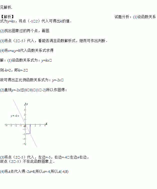 已知正比例函数图象经过点(-1,2).