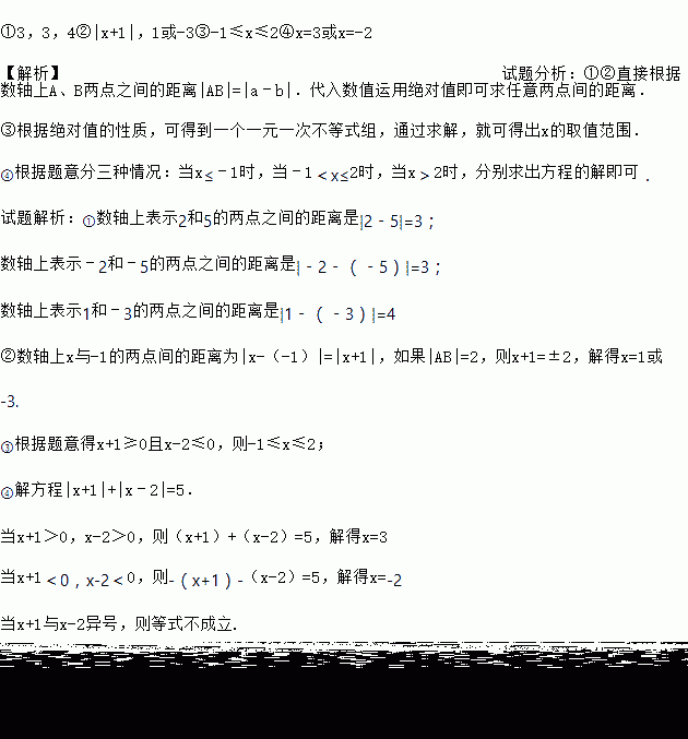 ①数轴上表示2和5的两点之间的距离是 ,数轴上表示﹣2和﹣5的两点之间的距离是 ,数轴上表示1和﹣3的两点之间的距离是 ;