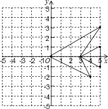 建立直角坐标系,描出下列各点:(0,0),(5,3),(3,0),(5,1),(5,-1),(4,-2),然后按照(0,0)→(5,3)→(3,0)→(5,1)→(5,-1)→(3,0)→(4,-2)→(0,0)的顺序用线段连接起来.看看你得到的图案像什么?