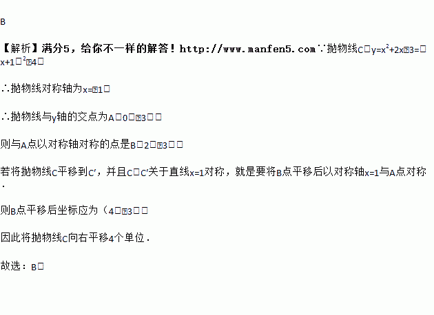 已知抛物线c:y=x2+2x﹣3,将抛物线c平移得到抛物线c′,如果两条抛物线,关于直线x=1对称,那么下列说法正确的是( )