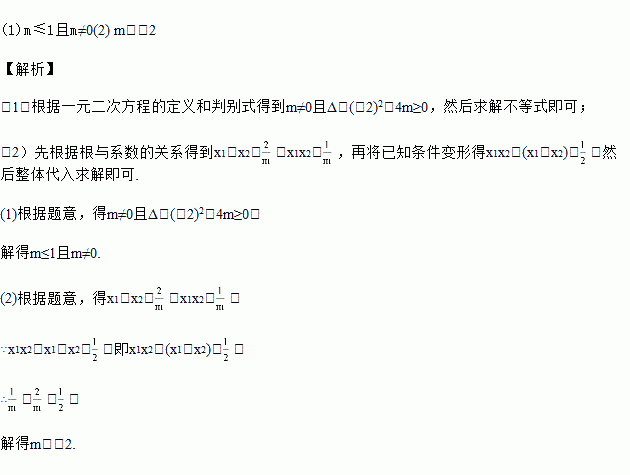 (1)若方程有两个实数根,求m的取值范围;