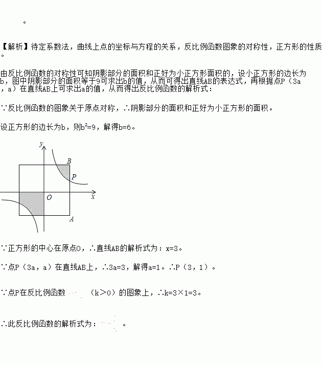 如图,在直角坐标系中,正方形的中心在原点O,且正方形的一组对边与x轴平行,点P(3a,a)是反比例函数
