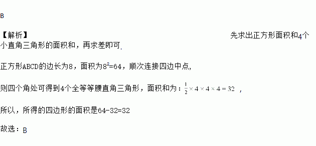正方形ABCD的边长为8,顺次连接四边中点,所得的四边形的面积是( )