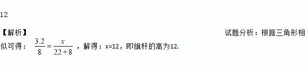 如图,为测量学校旗杆的高度,小东用长为3.2m的竹竿做测量工具.移动竹竿,使竹竿、旗杆顶端的影子恰好落在地面的同一点,此时,竹竿与这一点相距8m,与旗杆相距22m,则旗杆的高为_____m.