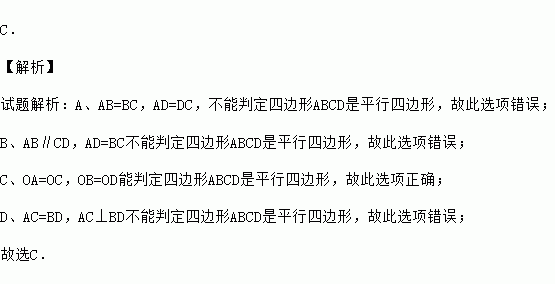 A.AB=BC,AD=DC B.AB//CD,AD=BC