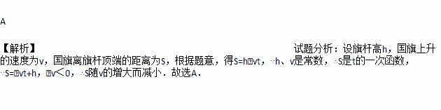 为了加强爱国主义教育,每周一学校都要举行庄严的升旗仪式,同学们凝视着冉冉上升的国旗,下列哪个函数图象能近似地刻画上升国旗离旗杆顶端的距离与时间的关系( )