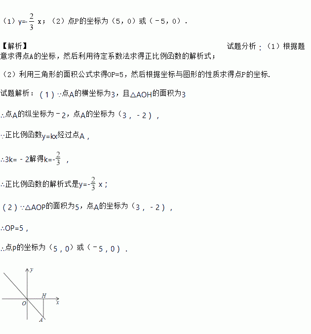已知正比例函数y=kx经过点A,点A在第四象限,过点A作AH⊥x轴,垂足为点H,点A的横坐标为3,且△AOH的面积为3.