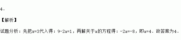 已知:x=3是关于x的方程3x-2a=1的解,则a的值是 .