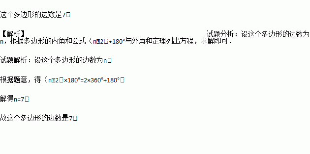一个多边形的内角和比它的外角的和的2倍还大180°,求这个多边形的边数.