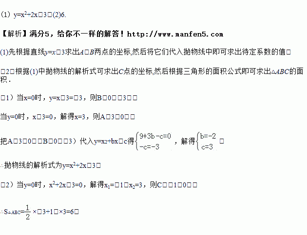 如图抛物线y=x2+bx﹣c经过直线y=x﹣3与坐标轴的两个交点A,B,此抛物线与x轴的另一个交点为C,抛物线的顶点为D.