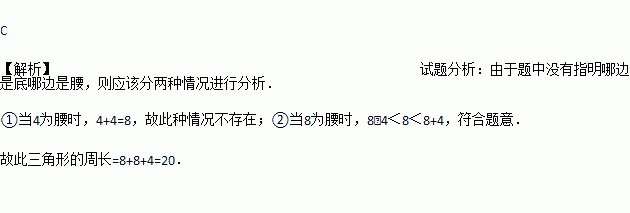 一个等腰三角形的两边长分别为4,8,则它的周长为( )