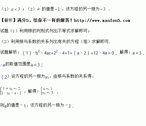 (2)若该方程的一个根为1,求的值及该方程的另一根.