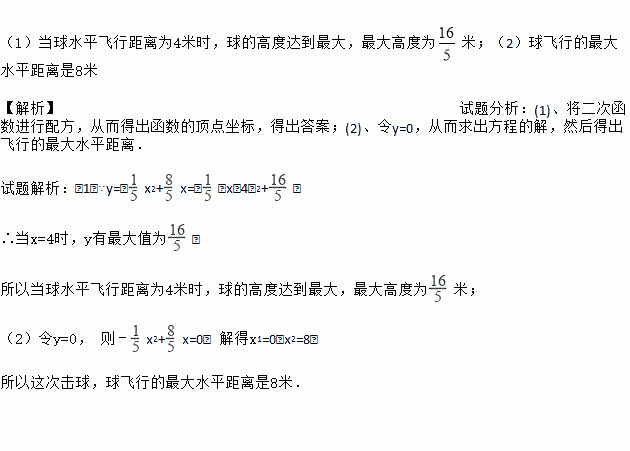 x,其中y(m)是球飞行的高度,x(m)是球飞行的水平距离.
