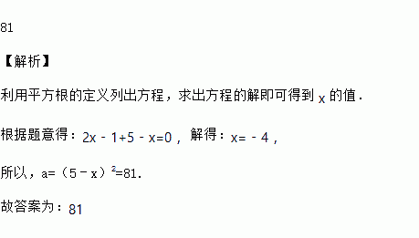 一个正数a的平方根是2x﹣1和5﹣x,则a=_____.