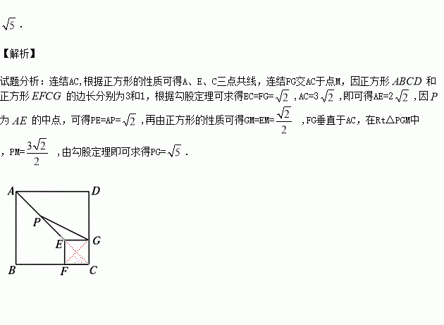 如图,正方形和正方形的边长分别为3和1,点分别在边上,为的中点,连接,则的长为 .