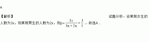 某班女生与男生的人数比为3:2,从该班学生中随机选取一名学生是女生的概率为( )