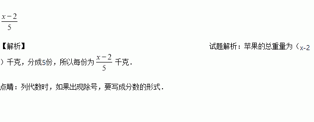 一筐苹果总重千克,筐本身重千克,若将苹果平均分成份则每份重千克______.