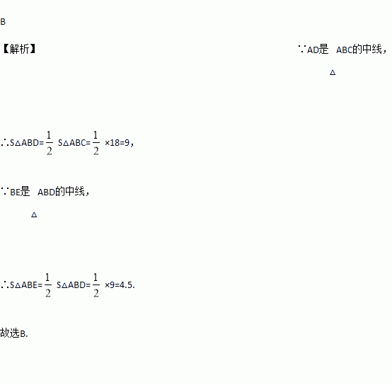 已知AD是△ABC的中线,BE是△ABD的中线,若△ABC的面积为18,则△ABE的面积为( )