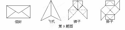 观察下列用纸折叠成的图案,如图所示。其中轴对称图形和中心对称图形的个数分别为( )