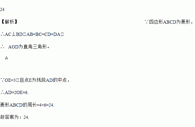 如图,菱形ABCD的对角线AC、BD相交于点O,E为AD的中点,若OE=3,则菱形ABCD的周长为_____.