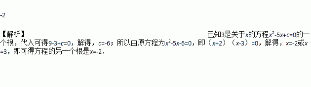 若3是关于x的方程x2-x+c=0的一个根,则方程的另一个根等于____.