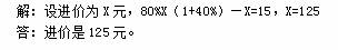 7、一家商店将某种服装按成本价提高40%后标价,又以8折优惠卖出,结果每件仍获利15元,这种服装每件的成本为