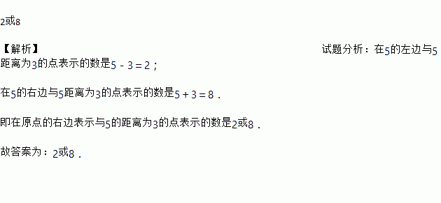 数轴上,在原点的右边表示与5的距离为3的点表示的数是______.