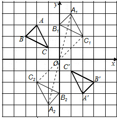 (2)将△A1B1C1绕原点旋转180°,即作△A1B1C1关于原点的中心对称图形,首先作A1、B1、C1关于原点的对称点A2、B2、C2,连接A2B2、A2C2、B2C2,那么△A2B2C2即为求作的三角形.