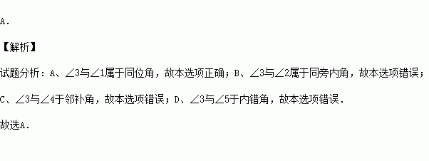 如图,直线AB、CD被直线EF所截,则∠3的同位角是( )