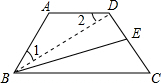 分析:连接BD.根据等腰梯形的两个底角相等,得∠ABC=∠C=60°,则∠A=∠ADC=120°;结合等腰三角形的两个底角相等和三角形的内角和定理,得∠1=∠2=30°,则∠BDC=90°.根据直角三角形的性质求得BD的长,进而根据勾股定理求得BE的长.