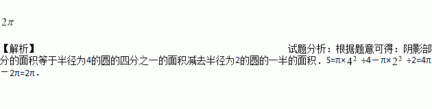 如图,在边长为4的正方形ABCD中,先以点A为圆心,AD的长为半径画弧,再以AB边的中点为圆心,AB长的一半为半径画弧,则两弧之间的阴影部分面积是______(结果保留)